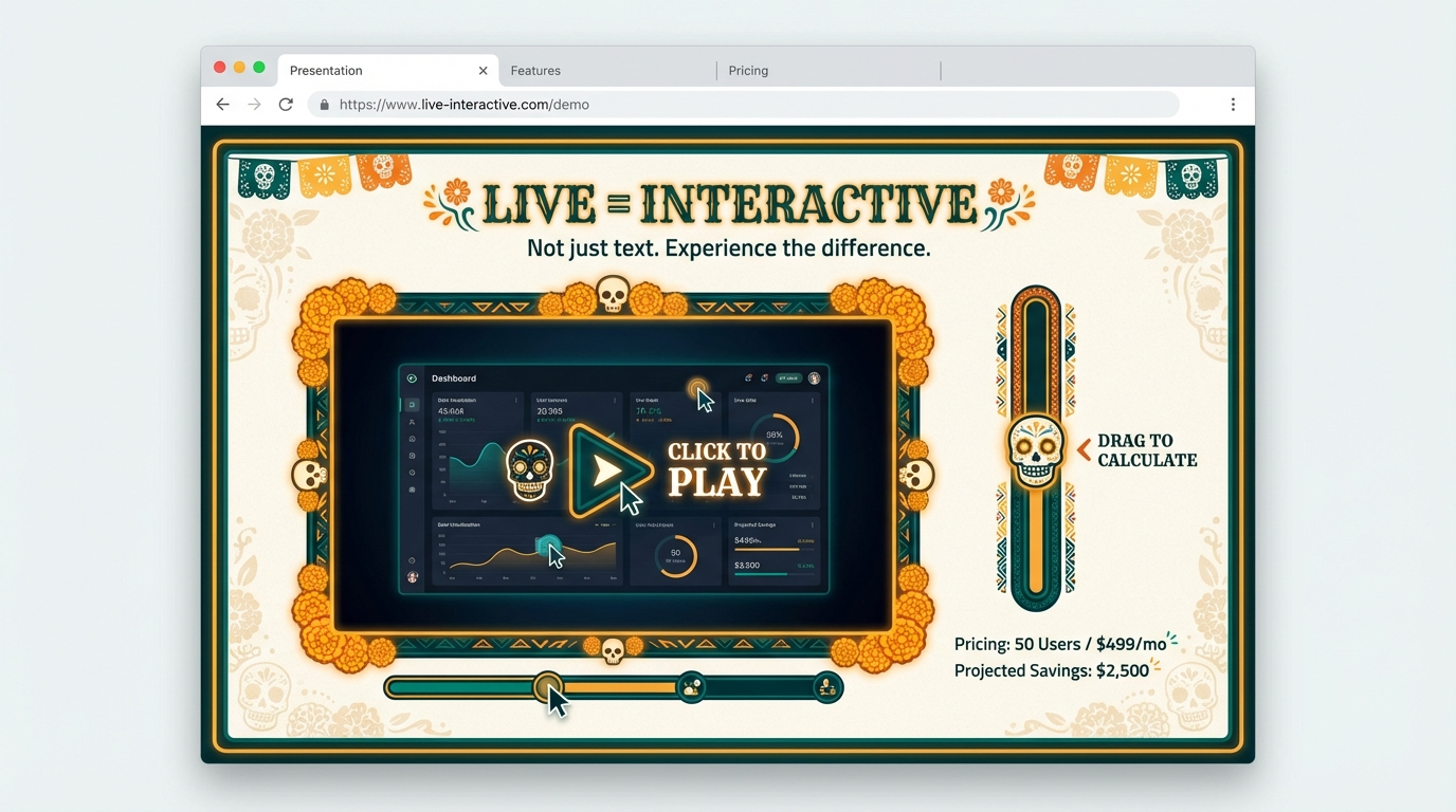 Live Deck: You embed the Loom video, the interactive ROI calculator, or the product tour directly into the page. They watch, click, and calculate without ever leaving your narrative.
